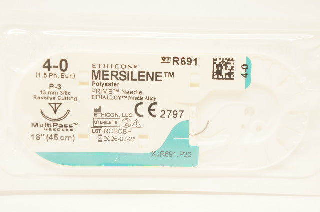 Ethicon R691 4-0 MERSILENE Polyester Stre P-3 13mm 3/8c Reverse Cutting 18inch
