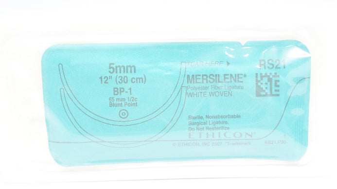 - Ethicon RS21 5mm MERSILENE, White Woven, BP-1 Blunt Point 65mm 1/2c, 12inch (x)