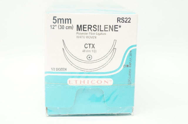 - Ethicon RS22 Mersilene Polyester Fiber Ligature CTX 48mm 1/2c 12in (x)- Box of 6