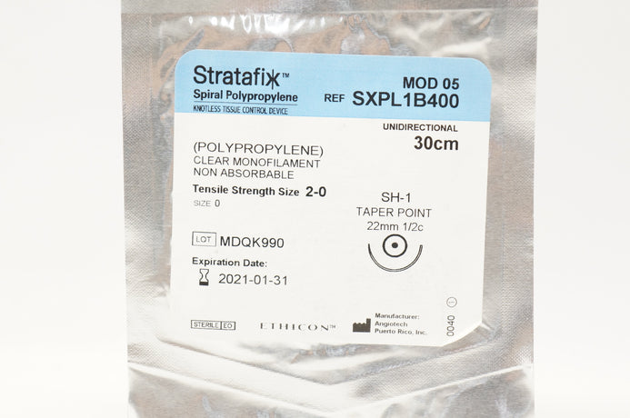 Angiotech SXPL1B400 Ethicon STRATAFIX Spiral Polypropylene Knotless Tissue Control Device 30cm 2-0 SH-1 Taper Point 22mm 1/2c