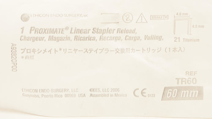 - Ethicon TR60 1 Proximate Linear Stapler Reload 21 Titanium 60mm 4.0 x 4.5mm