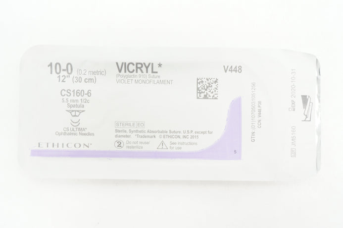 - Ethicon V448 6-0 VICRYL 10-0 CS160-6 5.5mm 1/2c Spatula, 12inch (x)