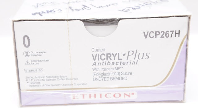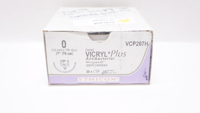 - Ethicon VCP267H 0 Vicryl CP-1 36mm 1/2c Reverse Cutting, 27inch (x) - Box of 36