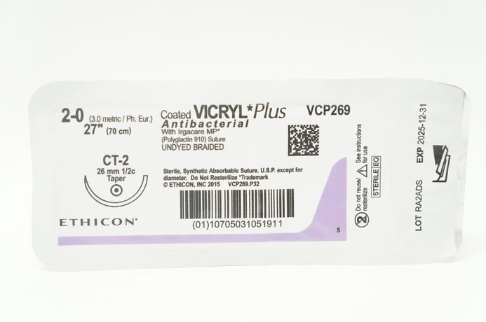 Ethicon VCP269 2-0 VICRYL Plus CT-2 26mm 1/2c Taper, 27inch