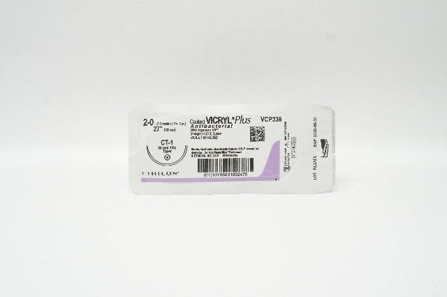 - Ethicon VCP339 2-0 Coated VICRYL Plus, CT-1, Taper 36mm 1/2c, 27inch