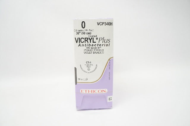 - Ethicon VCP346H 0 Vicryl Plus Stre CT-1 36mm 1/2c Taper 36in.- Box of 36