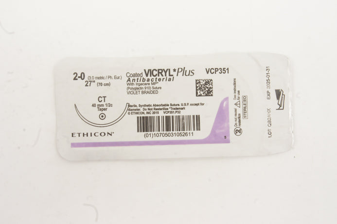 Ethicon VCP351 2-0 Coated VICRYL Plus, CT 40mm 1/2c Taper, 27inch