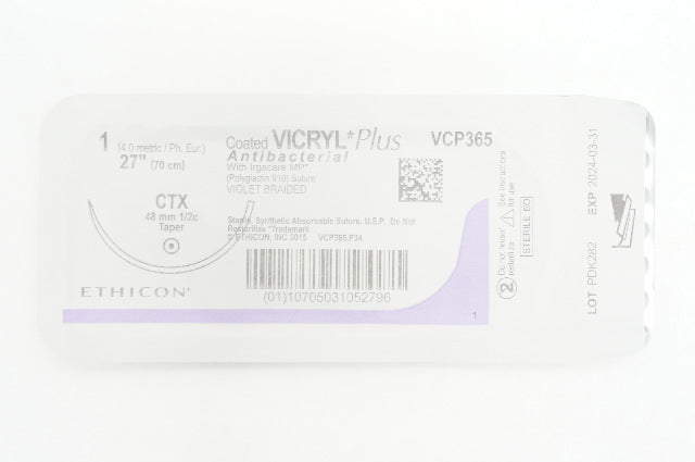 - Ethicon VCP365 1 VICRYL, CTX, 48mm 1/2c Taper, 27inch