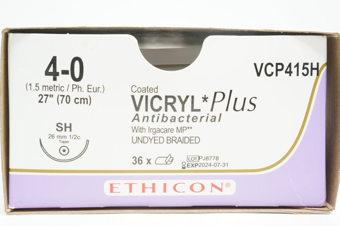 - Ethicon VCP415H Coated VICRYL Plus Stre, SH, 27inch, Size 4-0 - Box of 36