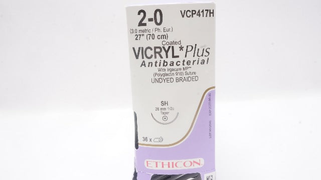 - Ethicon VCP417H 2-0 Vicryl, SH, 26mm 1/2c Taper, 27inch (x) - Box of 20