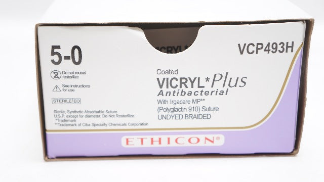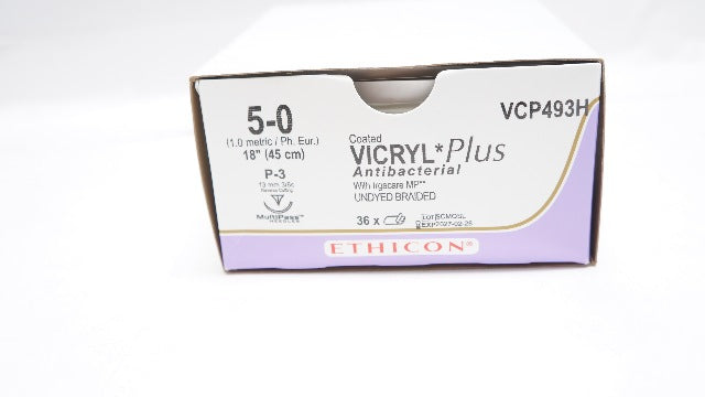 - Ethicon VCP493H 5-0 Vicryl Stre P-3 13mm 3/8c ReverseCutting 18inch - Box of 35