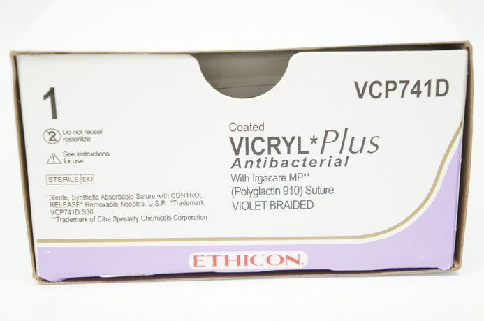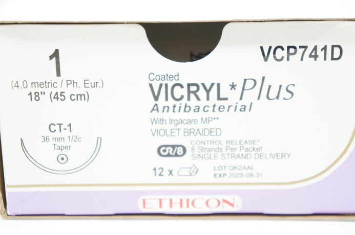 - Ethicon VCP741D VICRYL Plus 1 CT-1 36mm 1/2c Taper 18inch - Box of 12