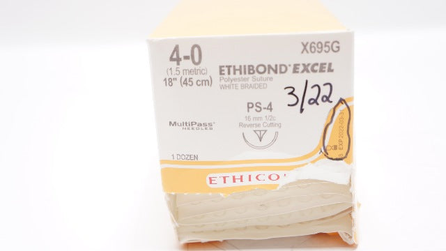 - Ethicon X695G 4-0 Excel, PS-4, 16mm 1/2c Reverse Cutting, 18inch (x) -Box of 12