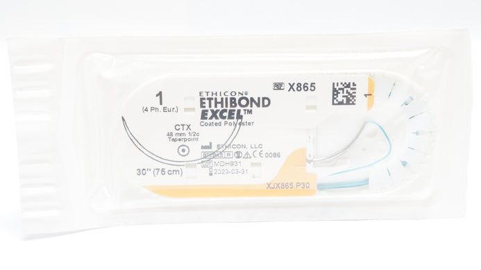 - Ethicon X865 1 Ethibond Excel CTX 48mm 1/2c Taper, 30inch (x)