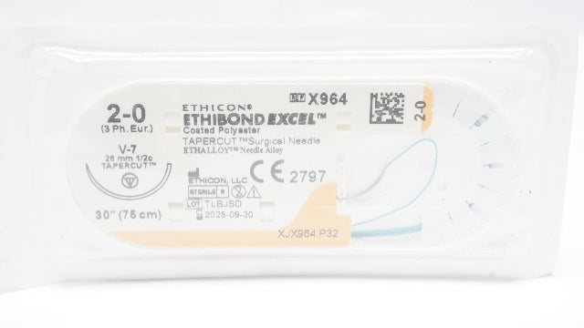 - Ethicon X964 2-0 ETHIBOND EXCEL Polyester Stre V-7 25mm 1/2c Taperpcut 30inch