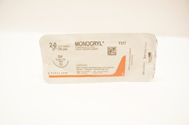 - Ethicon Y317 2-0 MONOCRYL Poliglecaprone 25 Stre SH 26mm 1/2c Taper 27inch