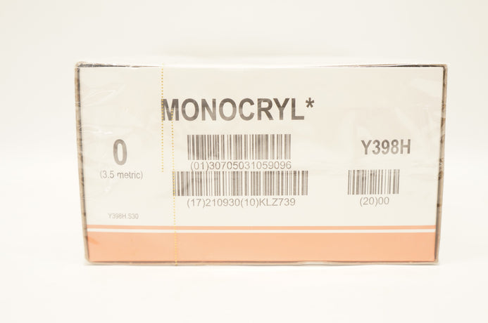 Ethicon Y398H 0 Monocryl Stre CTX 48mm 1/2c Taper 36inch (x) - Box of 36