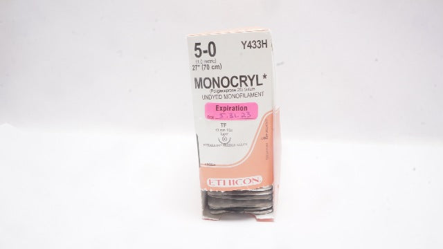 - Ethicon Y433H 5-0 MONOCRYL, TF, 13mm 1/2c Taper, 27inch (x) - Box of 32