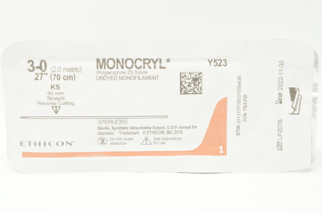 - Ethicon Y523 3-0 MONOCRYL KS 60mm Straight 27inch