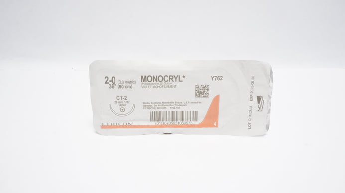 - Ethicon Y762 2-0 Monocryl Stre Violet Monofilament CT-2 26mm 1/2c Taper, 36in(x)