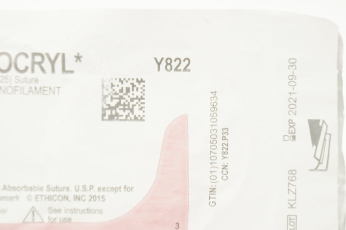 Ethicon Y822 5-0 MONOCRYL PC-5 19mm 3/8c Conventional Cutting, 18inch (x)