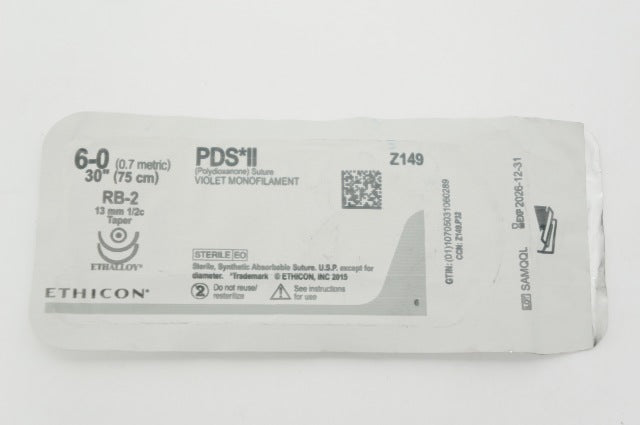 Ethicon Z149 6-0 PDS II, Violet Monofilament RB-2 13mm 1/2c Taper, 30inch