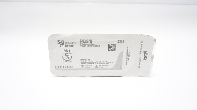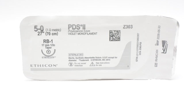 Ethicon Z303 5-0 PDS II VIOLET MONOFILAMENT RB-1 17mm 1/2c Taper, 27In
