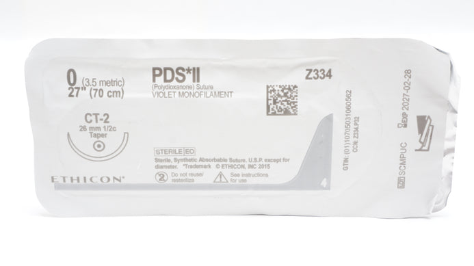 - Ethicon Z334 0 PDS II Polydioxanone Stre CT-2 26mm 1/2c Taper, 27inch