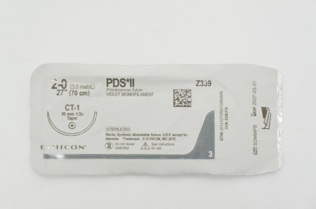 - Ethicon Z339 2-0 PDS II Polydioxanone Stre CT-1, 36mm 1/2c Taper, 27inch