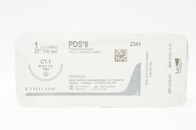 - Ethicon Z341 1 PDS II Polydioxanone Stre CT-1, 36mm 1/2c Taper, 27inch