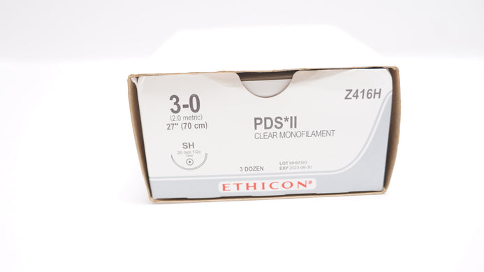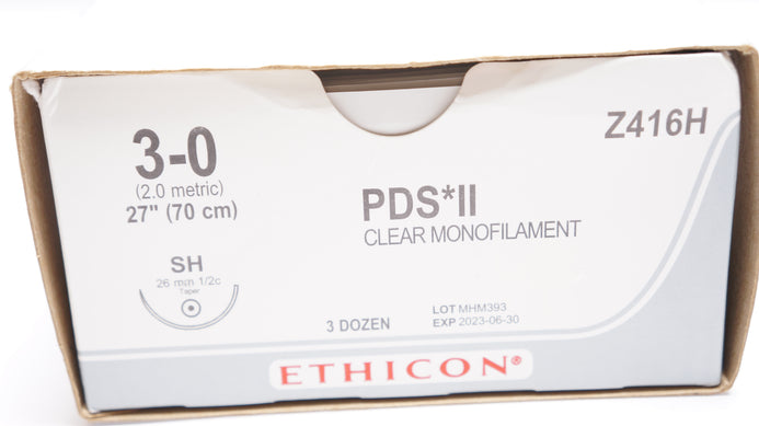 - Ethicon Z416H 3-0 PDS II Monofilament SH 26in 36mm 1/2c Taper 27in (x)-Box of 36