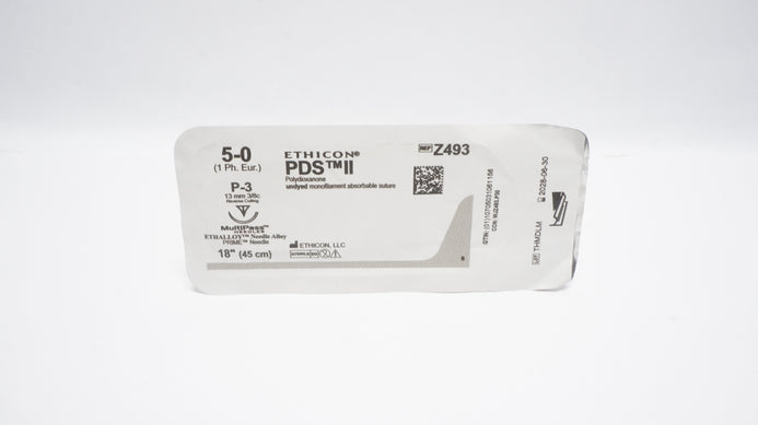 - Ethicon Z493 5-0 PDS II Polydioxanone Stre P-3 13mm 3/8c Reverse Cutting, 18inch