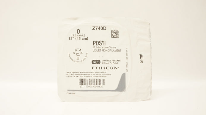 - Ethicon Z740D 0 PDS II VIOLET MONOFILAMENT CT-1 36mm 1/2c Taper, 18inch (x)