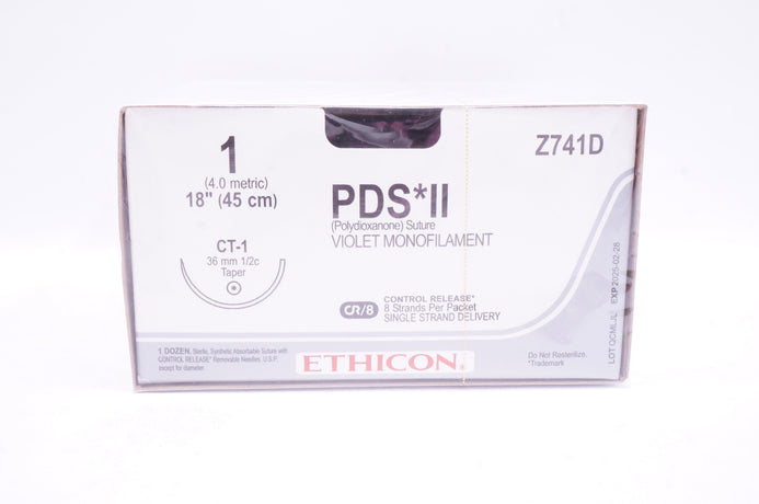 - Ethicon Z741D 1 PDS II, Violet Monofilament, CT-1 36mm 1/2c, 18in. - Box of 12