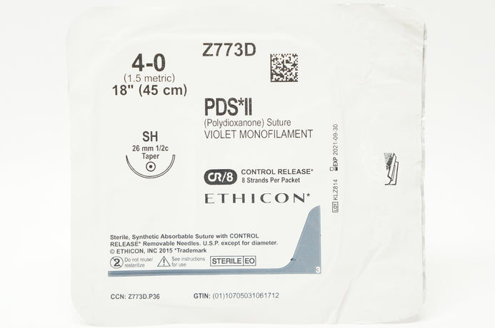 - Ethicon Z773D 4-0 PDS II Violet Monofilament SH 26mm 1/2c Taper, 18inch (x)