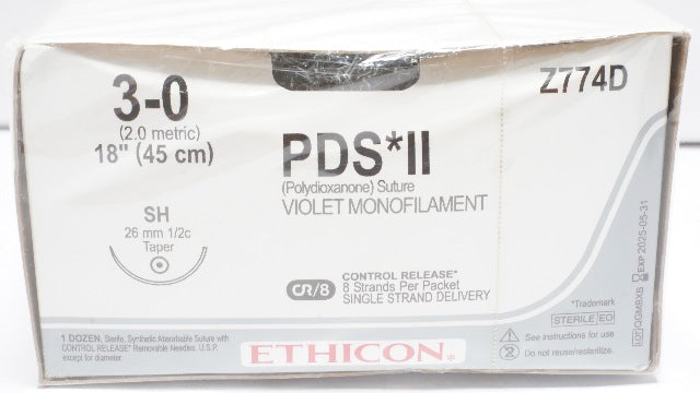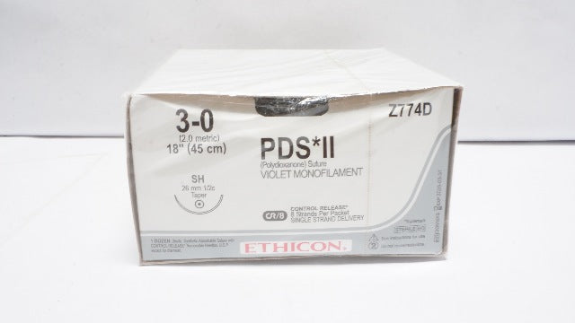 - Ethicon Z774D 3-0 PDS II Polydioxanone Stre SH 26mm 1/2c Taper 18in(x)-Box of 12