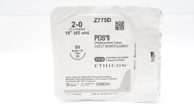- Ethicon Z775D 2-0 PDS II Polydioxanone Stre SH 26mm 1/2c Taper 18inch CR/8 (x)