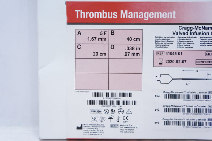- EV3 41045-01 Cragg-McNamara Valved Infusion Cath. 5F x 40cm x 20cm (x)