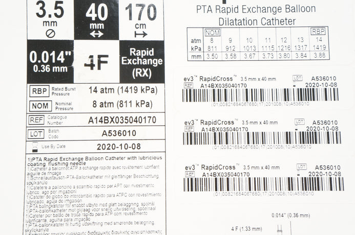 - ev3 A14BX035040170 RapidCross Rapid Exchange Dilatation Cath. .014inch x 40mm(x)