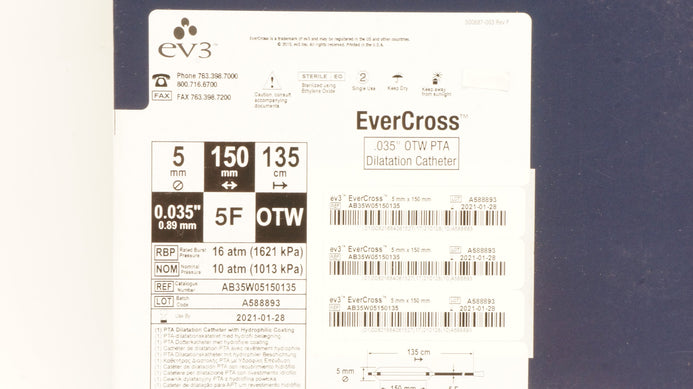 - EV3 AB35W05150135 EverCross .035inch 5F OTW PTA Dilatation Cath. (x)