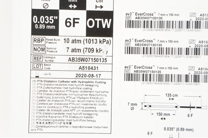 ev3 AB35W07150135 EverCross .035inch OTW PTA Dilatation Cath. 7mm x 150mm (x)