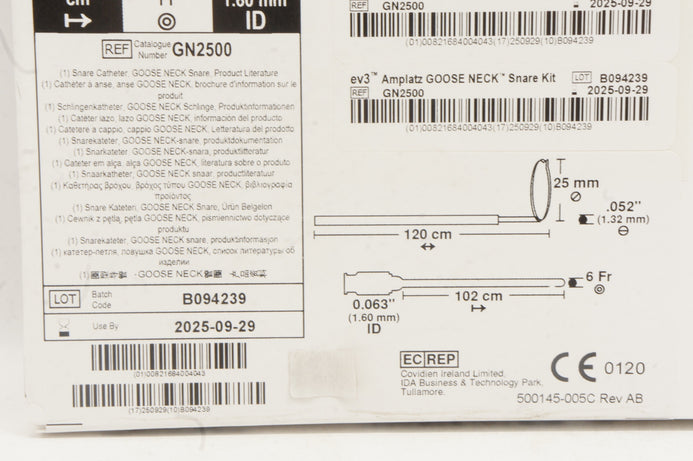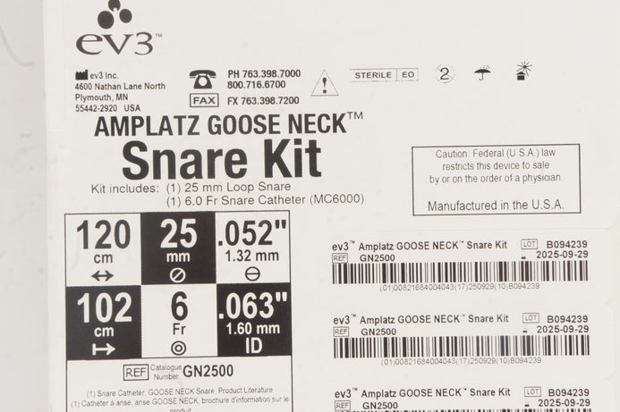 - EV3 GN2500 Amplatz Goose Neck Snare Kit 120cm x 25mm x 102cm x 6Fr
