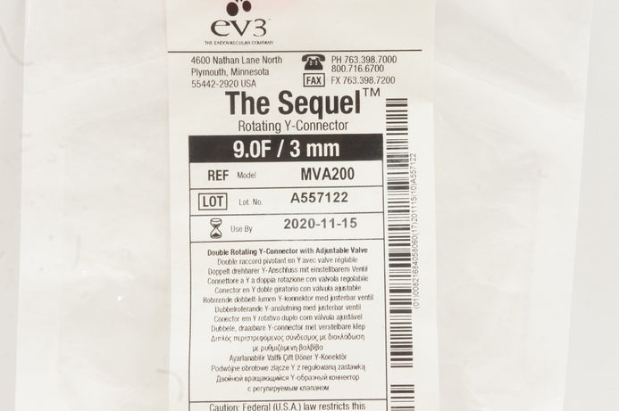 - EV3 MVA200 The Sequel Rotating Y-Connector with Adjustable Valve 9.0F x 3mm (x)