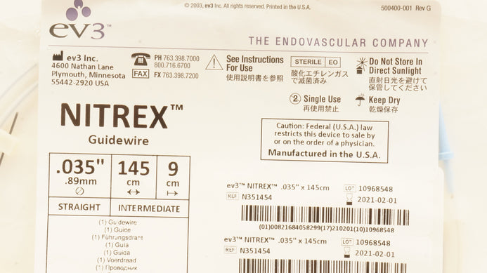 - EV3 N351454 Nitrex Guidewire .035inch 145cm 9cm (x)