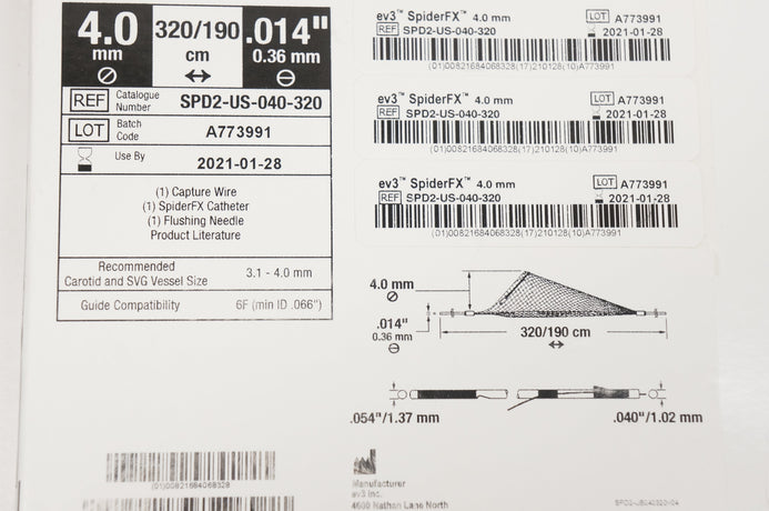 - EV3 SPD2-US-040-320 SpiderFx Embolic Protection Device 4.0mm