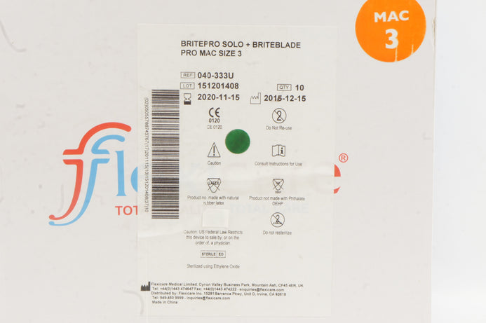 - Flexicare 040-333U BritePro Solo Fiber Optic Laryngoscope Handle MAC3-Boxof 5(x)