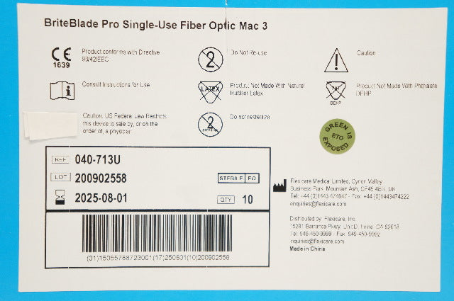 - Flexicare 040-713U BriteBlade Fiber Optic Metal Laryngoscope Blade MAC3-Box of10