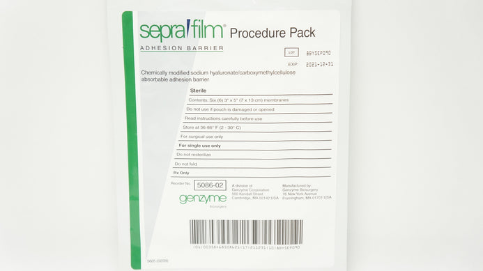 - Genzyme 5086-02 Seprafilm Adhesion Barrier 3 x 5inch Membranes (x) - Box of 5