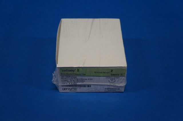 Genzyme X-5209 Cottony II Green Braided Polyester Fiber, Size 2, 18", 1/2 Circle K Point HT-3