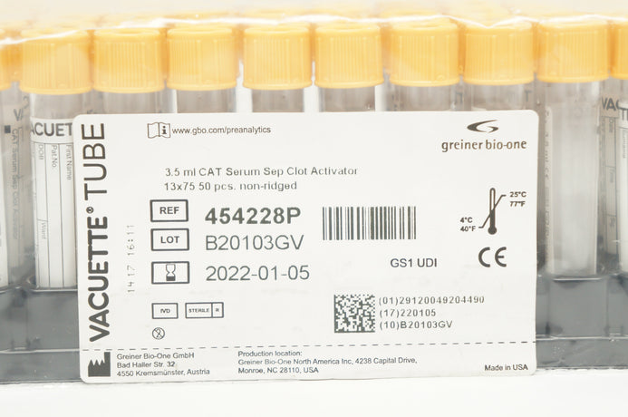 - Greiner-Bio-One 454228P Vacuette Tube 3.5ml Cat Serum Sep 13 x 75 - Pack of 50